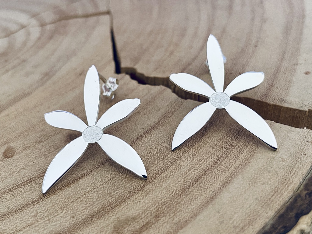 Frangipani earrings 2700.0 MUR Frangipani Earrings - 925 silver or 18k Gold Inspired by the frangipani, the iconic fragrance of the island, this creation captures the timeless scent and tropical beauty of Mauritius