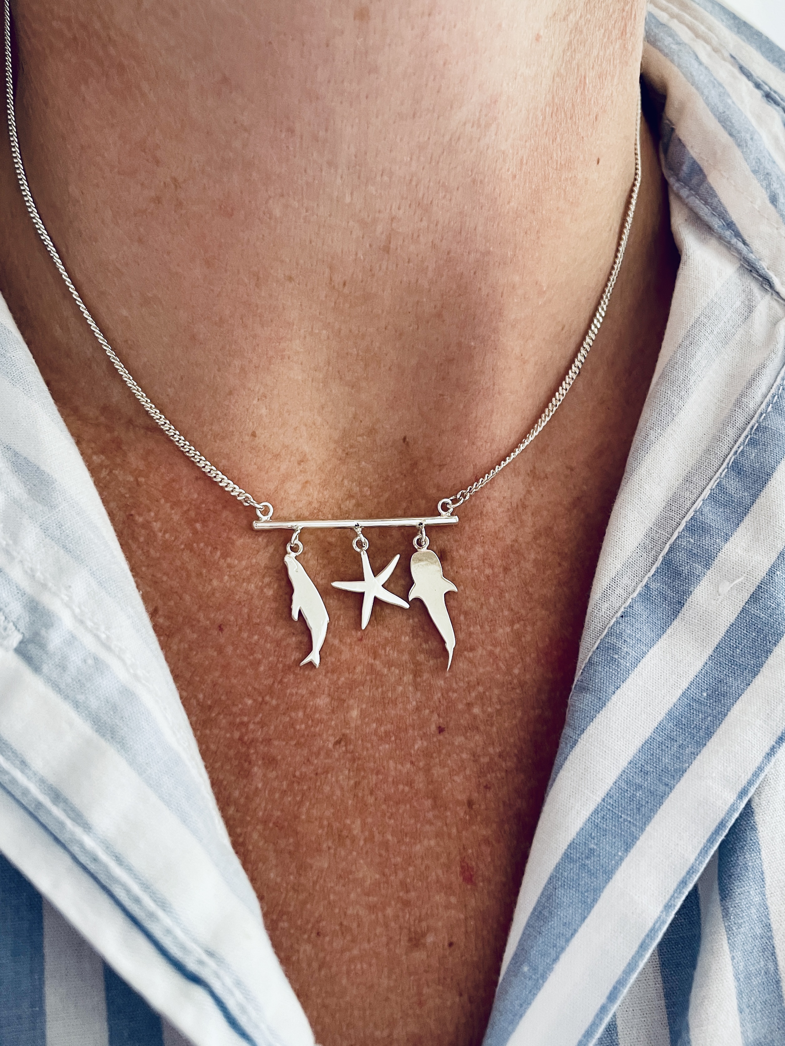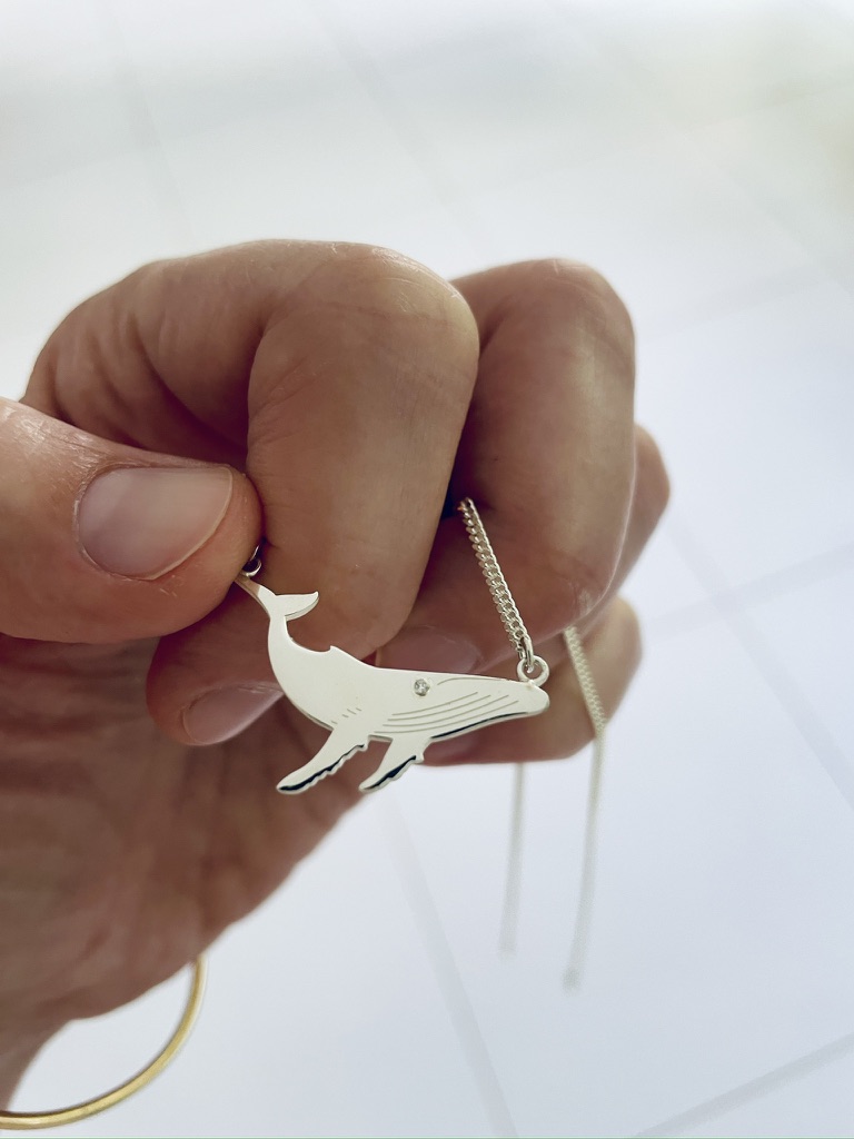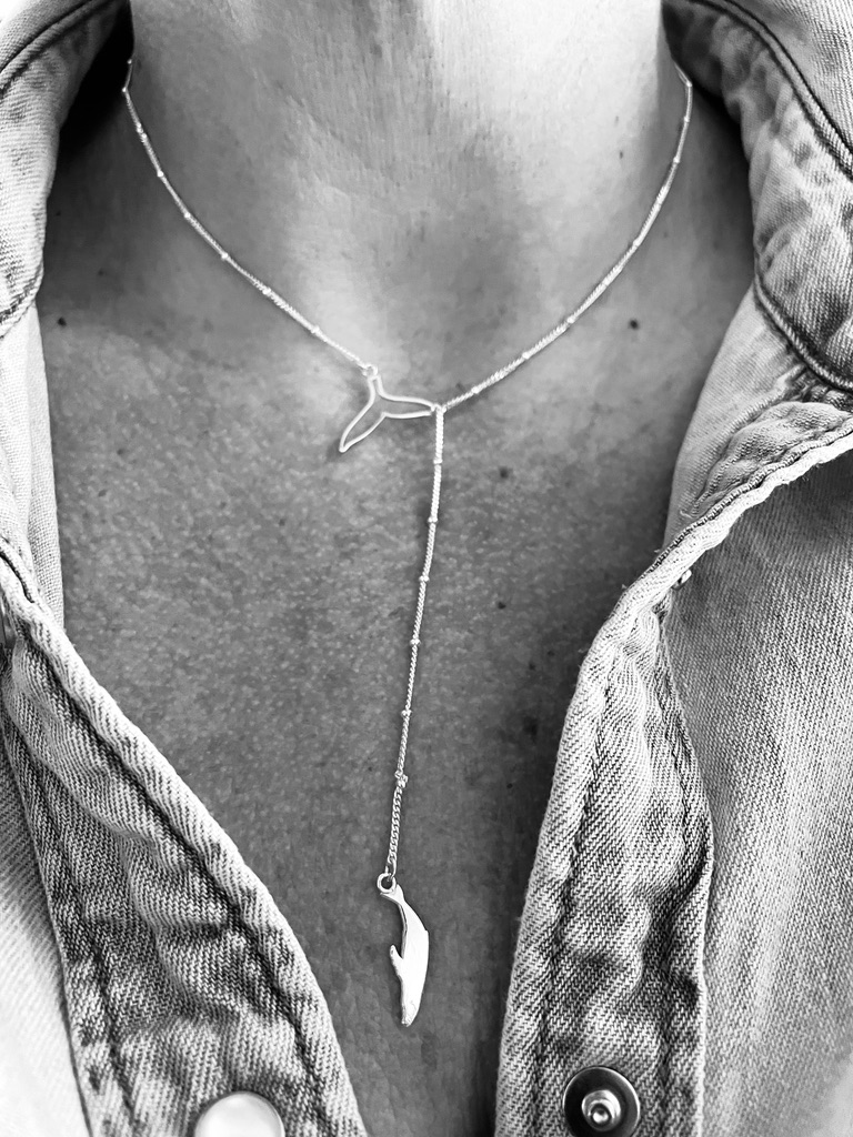 Whale tail toggle necklace 6300.0 MUR A whale tail necklace with a unique closure, where the whale slides through the tail to fasten the piece
