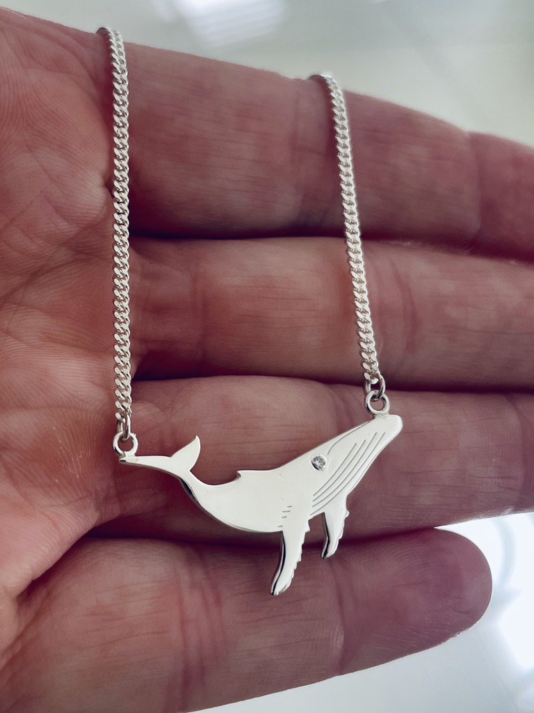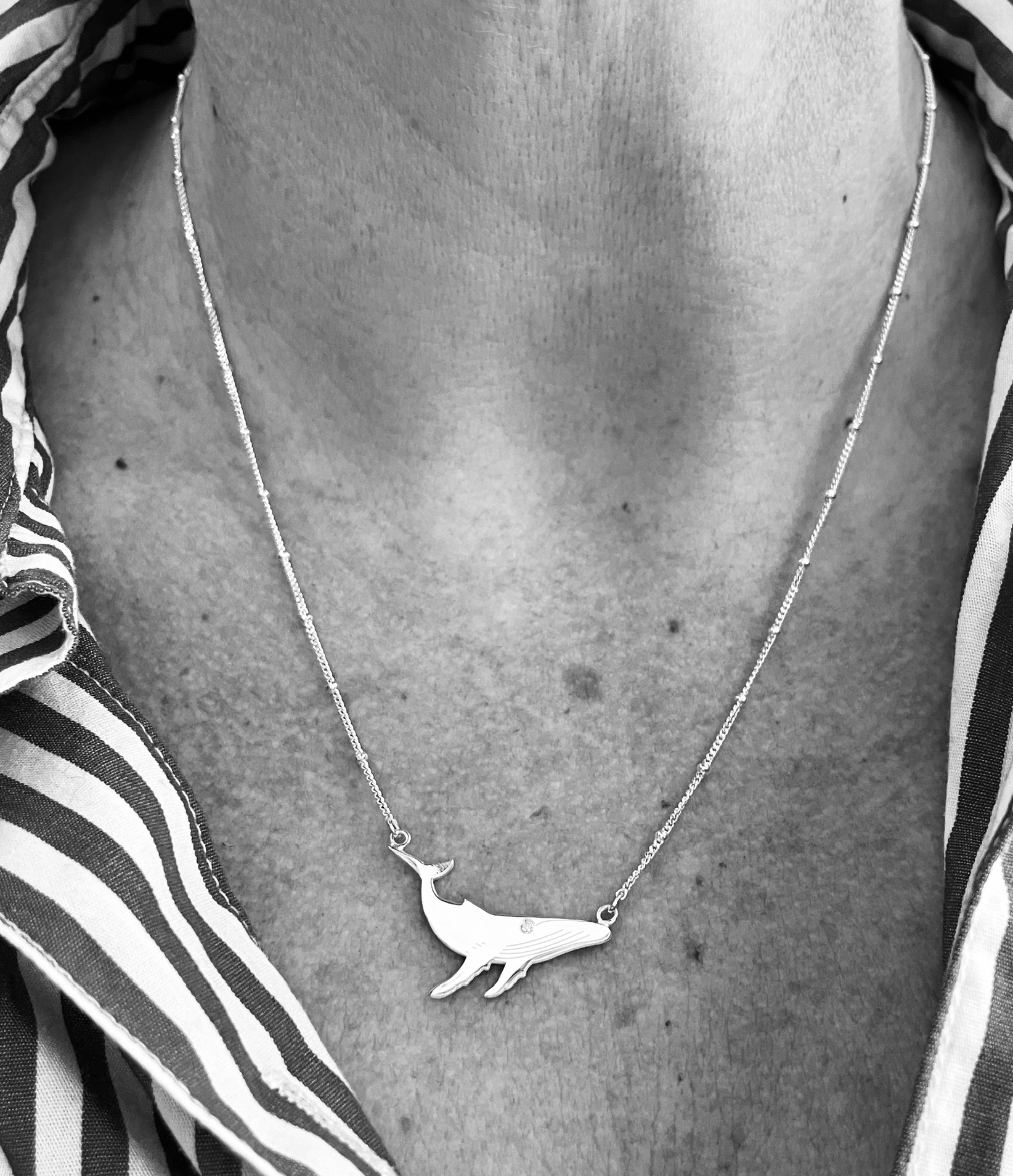 Whale necklace 6800.0 MUR Whale necklace - 925 silver or 18K gold - zircon Inspired by the whale, this creation reflects the majestic presence and deep serenity of the ocean. A symbol of strength, freedom, and timeless...
