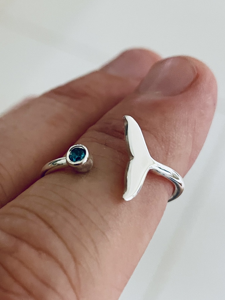 Whale tail ring 5500.0 MUR Whale tail Ring - Blue zircon - Adjustable ring - 925 Silver Inspired by the Indian Ocean, where whales return each year, this adjustable whale tail ring adorned with zircon reflects the freedom,...